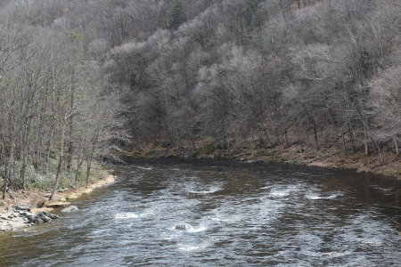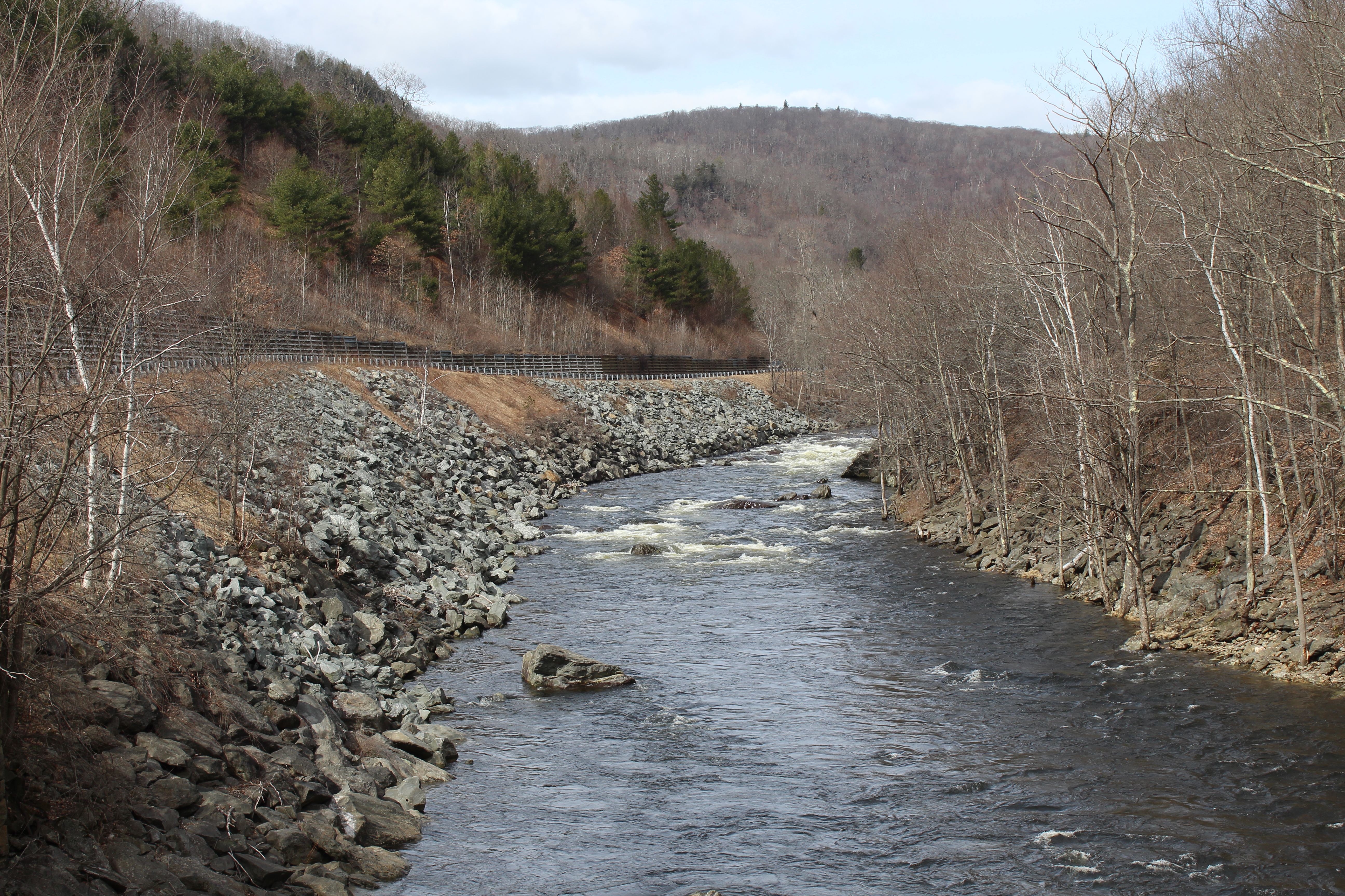 The Deerfield River from the Tunnel Rd bridge in Drury, MA on March 14th of 2020.