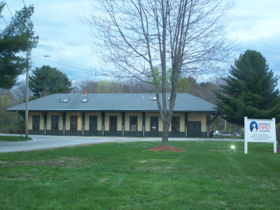 The old B&M depot at Kennebunk now houses a couple offices on May 16th of 2019.