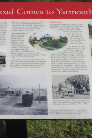 The Railroad Comes To Yarmouth plaque on July 14th of 2023.
