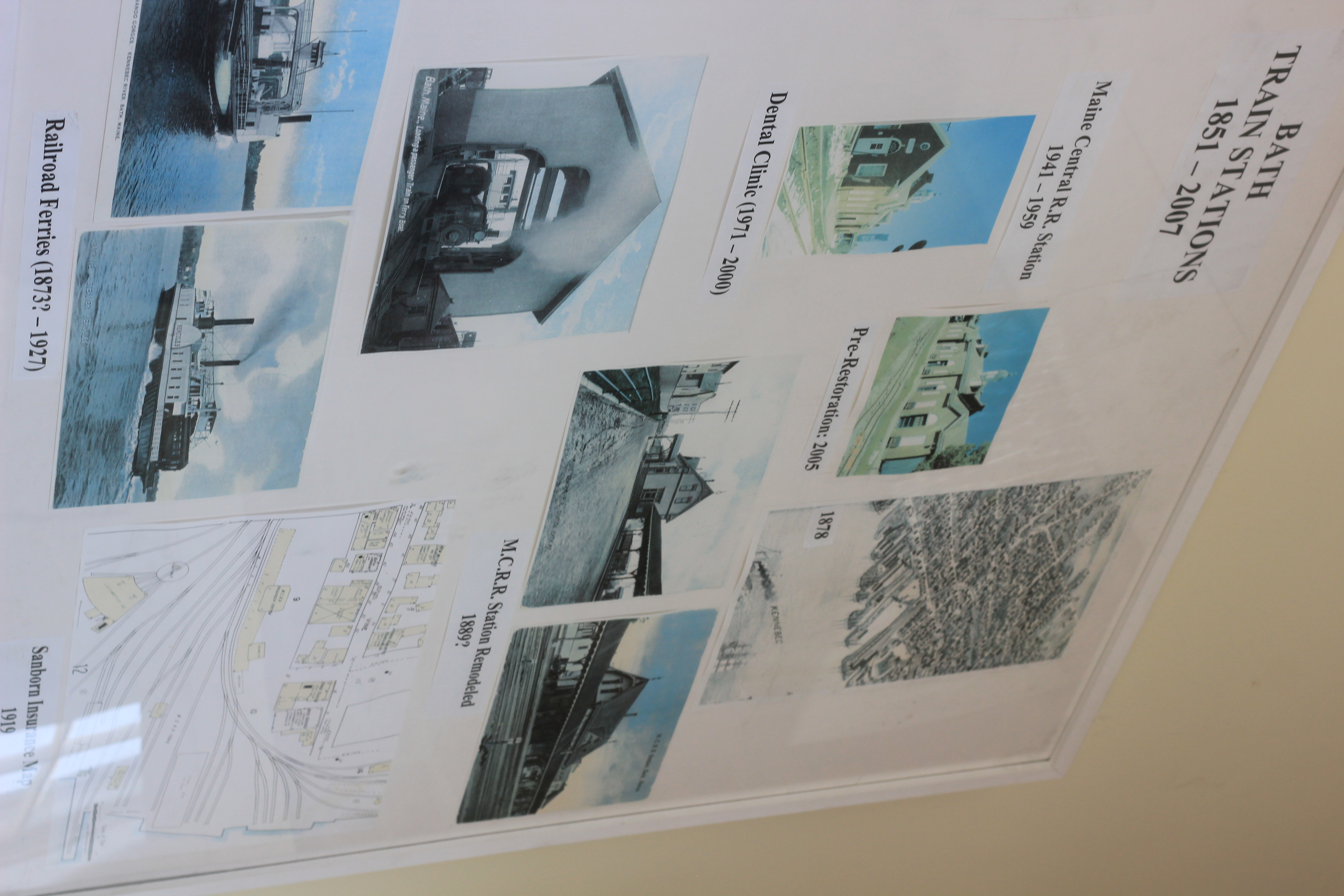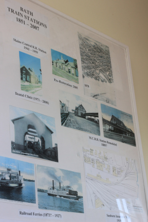 The Current Station at Bath was built for the Maine Central RR in 1941 primarily of brick as protection against fire. The weather vane on the top of the dome was a gift from William S. Newell, the president of B.I.W. The station would serve passengers until 1959 and freight until 1971 when it was sold to a dental clinic for the poor. The clinic moved to a new home in 2000, and in 2007 the city bought and restored the station for the Maine Eastern Railroad.