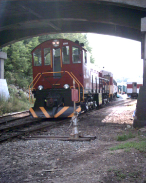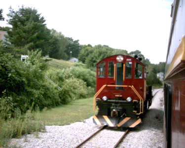 Maine Coast RR 958 running around the train in Bath in July of 1998.