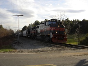 B&M 332 takes 506 and EDWA through Cumberland Center on the 17th of October 2007.