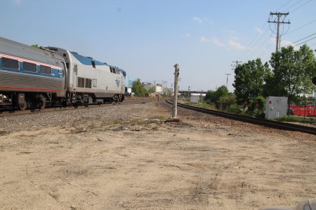 Amtrak 122 trailing along on 683 eastbound through Deering Junction on May 15th of 2021.