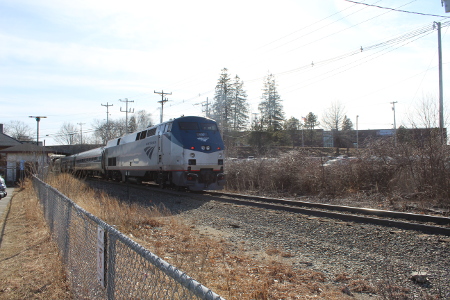 AMTK 197 with the Downeaster 686 at Durham, NH on March 16th of 2020.