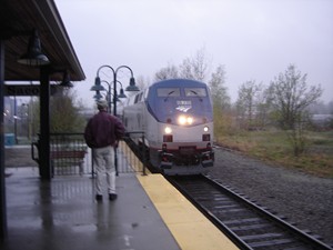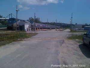 AMTK 73 waits with Amtrak 40th Anniversary Train in Portland on Aug. 11, 2011.