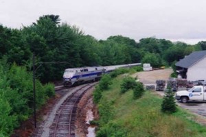 ME 265 & 291 and Amtk 824 make the first passenger train meet in Brunswick since the 1960's in August of 2004.