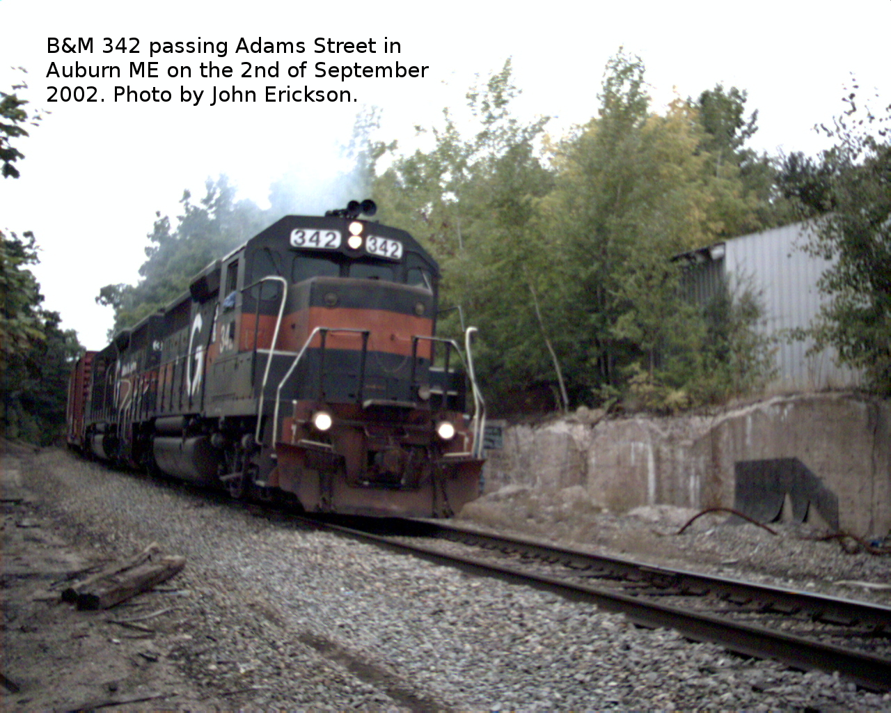 B&M 342 passing Adams Street in Auburn ME on the 2nd of September 2002.