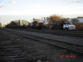 B&M 334, MEC 508, & MEC 374 work a rail-train on October 28th of 2010.