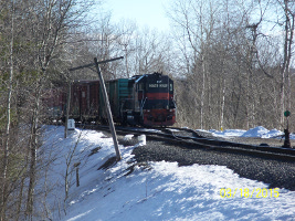 B&M 334, MEC 508, & MEC 374 work with the rail train crew to off load welded rail at Deering Junction on October 28th of 2010.
