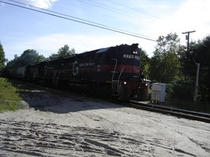 Boston & Maine 252 leads 203 and 378 with PORI past the detector at Gray on Jan 11, 2005.