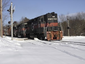 MEC 516, MEC 379 +1 at Blake in New Gloucester with POWA in tow on January 23rd of 2013.