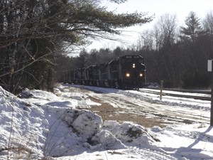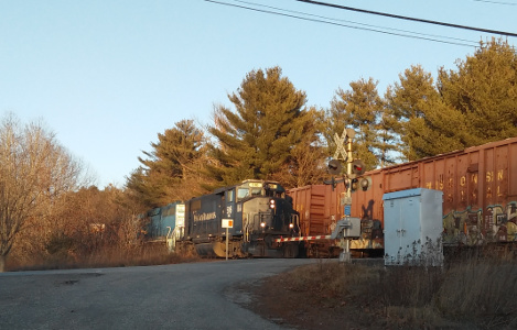 MEC 516, B&M 340, & B&M 333 run PORI through Gray, ME on November 20th of 2005.