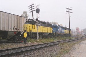 GMTX 3733, GATX 3702, & SLR 3000 meet MEC 380 at Danville ME in February of 2000.