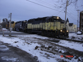 GMTX 3003, & 3109 run RUPO west toward Rigby at Hampshire Street in Auburn on December 26th 2012.