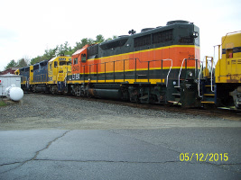 MEC 377, WA-3 in Waterville Yard on May 12, 2015 putting away new arrivals. These engines have not shown up in service.