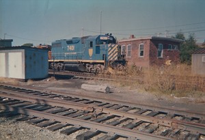 SLR 60 with train 513 at Lewiston Jct. in Auburn, ME on the 9th of October 2002.