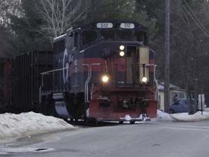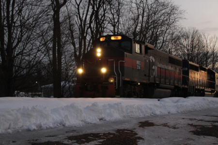 MEC 512 heads east throuhg Topsham on February 8th of 2010.