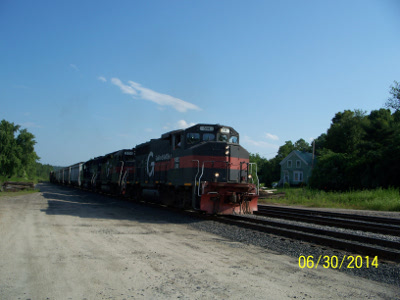 MEC engines 510, 501, & 376 take a left with PORU at Leeds Junction on April 11th, 2013.