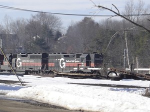 MEC 519, MEC 372, and B&M 332 head east on a light engine move at Royal Junction on the 20th of July 2005.