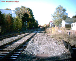 Oakland is the connection to the Madison Branch which ends at North Anson. Also here is One Steel, a recycling yard. The junction is at 44°33'03.7"N 69°42'50.6"W.