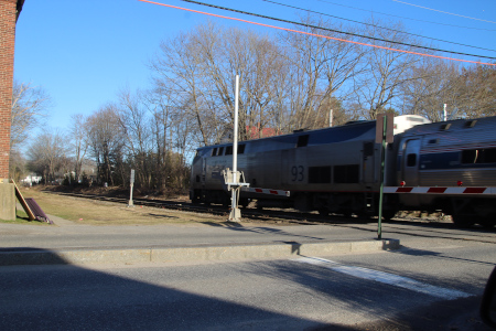 Amtrak 93, with 688 at Stanwood St in Brunswick on April 9th, 2024.