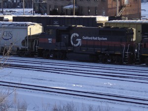B&M 333, CSXT 8104, BNSF 569, & CSXT 5834 in the Rigby engine pool on the 26th of October 2005.