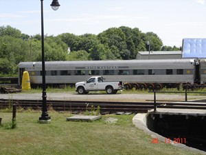 You can find them at 208 Park St, Rockland, ME 04841, 44°06'04.2"N 69°07'23.8"W. Three bays still have tracks, two have been removed, and the turntable still operates. A nearby yard houses unneeded cars. Although the passenger operations no longer exist, the roundhouse will likely be used by the freight operations and thus be the only wooden roundhouse still in operation by a railroad in the state. A more complete history can be found at waymarking.com