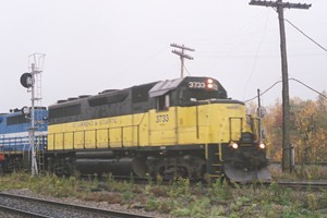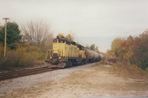 SLR 60 with train 513 at East Deering in Portland, ME on the 9th of October 2002.