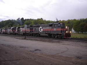 Beside the crew from the Sappi Mill in Hinkley, there are two or three switchers, a daily train to Rigby, and usually Bangor as well. This is also one of the major repair facilities with a dead engine line and engine pool.