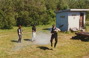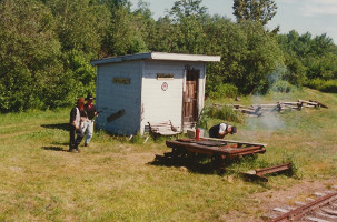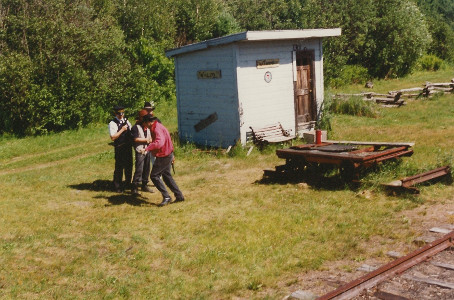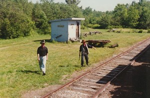 "Robbery" at Waldo in July of 1993 on the Belfast & Moosehead Lake Railroad.