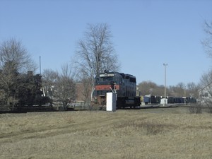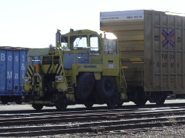 The yard itself hosts a two track inter-modal facility, a combined arrival and departure yard, and a small classification yard on the west end. You may also see an interesting little critter used as a yard goat. This is needed to handle a dead engine on the short transfer track.