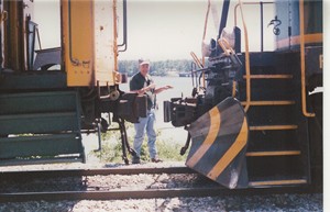 Maine Coast RR 958 Running around the train in Wiscassett in July of 1998.