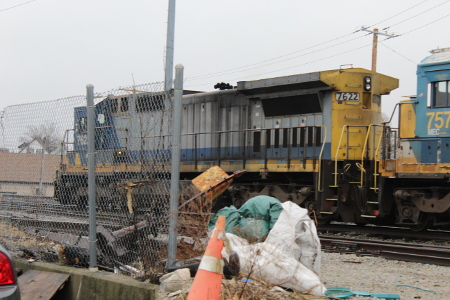 On Friday I was able to find AYPO at Lawrence, MA at 07:37 with MEC 7622, 7575, & 7727 doing switching. While I was there MBTA trains 208 & an unscheduled equipment move for 290 from Reading went by. I then went and found POAY at Chelmsford, MA with MEC 7585, 7635, & 7595 and followed them to Granitville, MA. However, I was not able to get ahead enough for a good picture.