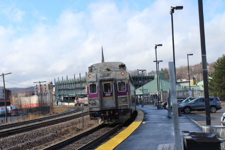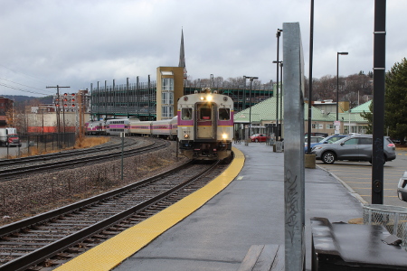 MBTA control car 1619 on the tail of train 413 at Fitchburg on March 13th of 2020.