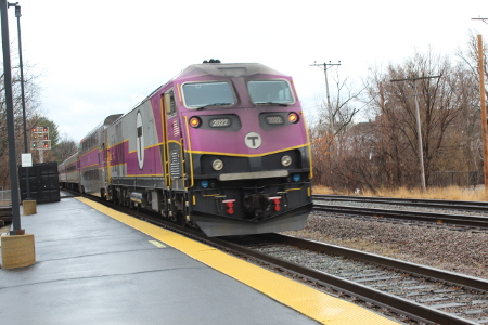 MBTA engine 1131 leads train 413 into Fitchburg on March 13th of 2020.