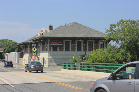 The Gardiner station was a one of a kind design done by Portland architect George Burnham for the Maine Central Railroad and replaced the former Gardiner station which was just south (railroad west) of it across the Cobbosseecontee Stream at Depot Square. It is a single-story masonry structure, built of stone and brick, and set on a full-height granite basement. The two ends and a small loft and under section held offices and other necessary rooms (restrooms).