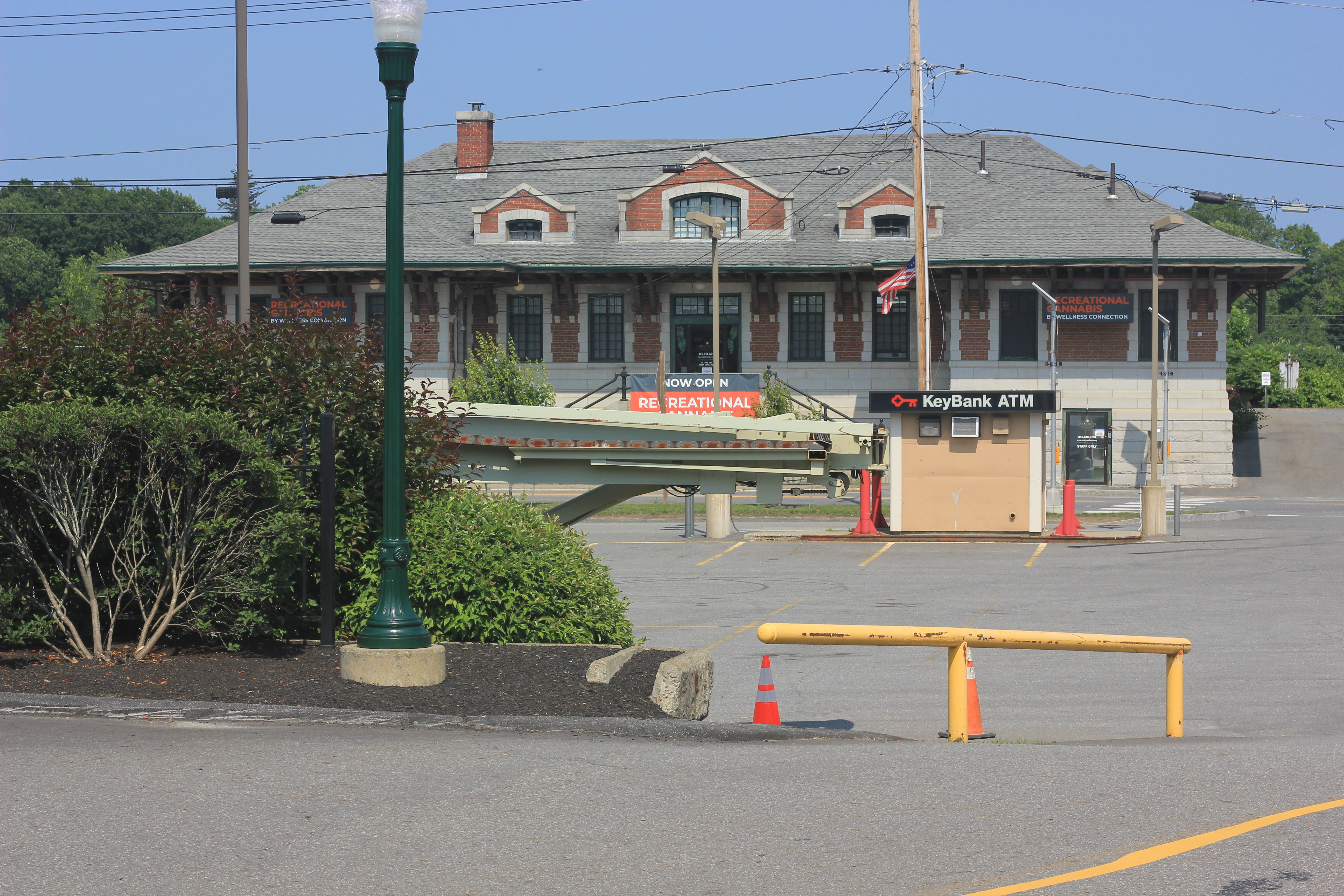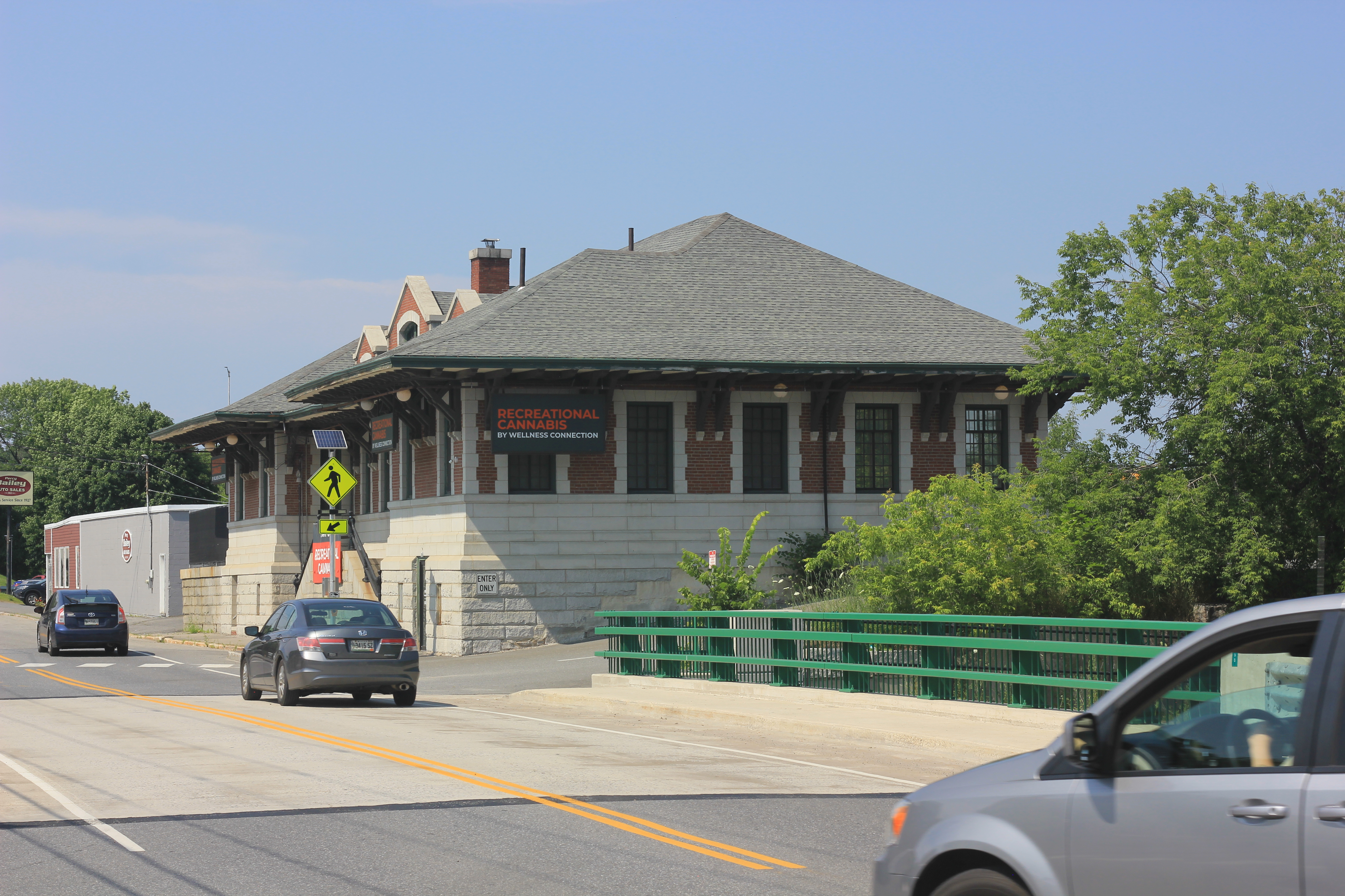The station is now the home of the Wellness Connection of Maine Herb Shop, and is at 31 Maine Ave, 44°13'51.0"N 69°46'16.1"W. By the way, it's not all about cannabis, only mostly.
