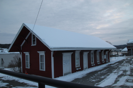 These are pictures of the Maine Central stations. Most of the stations are of single story hip roof construction, but watch for the differences among them. Lisbon Falls has added gables and a small second story, Bartlett Station also holds an engine stall, Lewiston had a grand waiting room, and Crawford Station a turret.