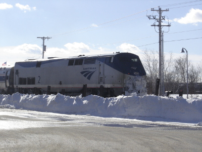 Amtrak Engine 2 glides past Mountain Junction with the Downeaster 691 on Jan. 1, 2013.