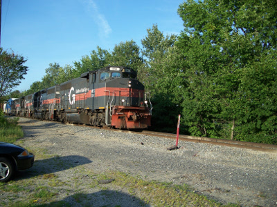 GMTX leased locomotive 3001 leads B&M 328 and RUPO through Green on July 23rd of 2015.