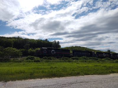 MEC 319 pulls RUPO through Den in Lewiston on June 27th of 2019.