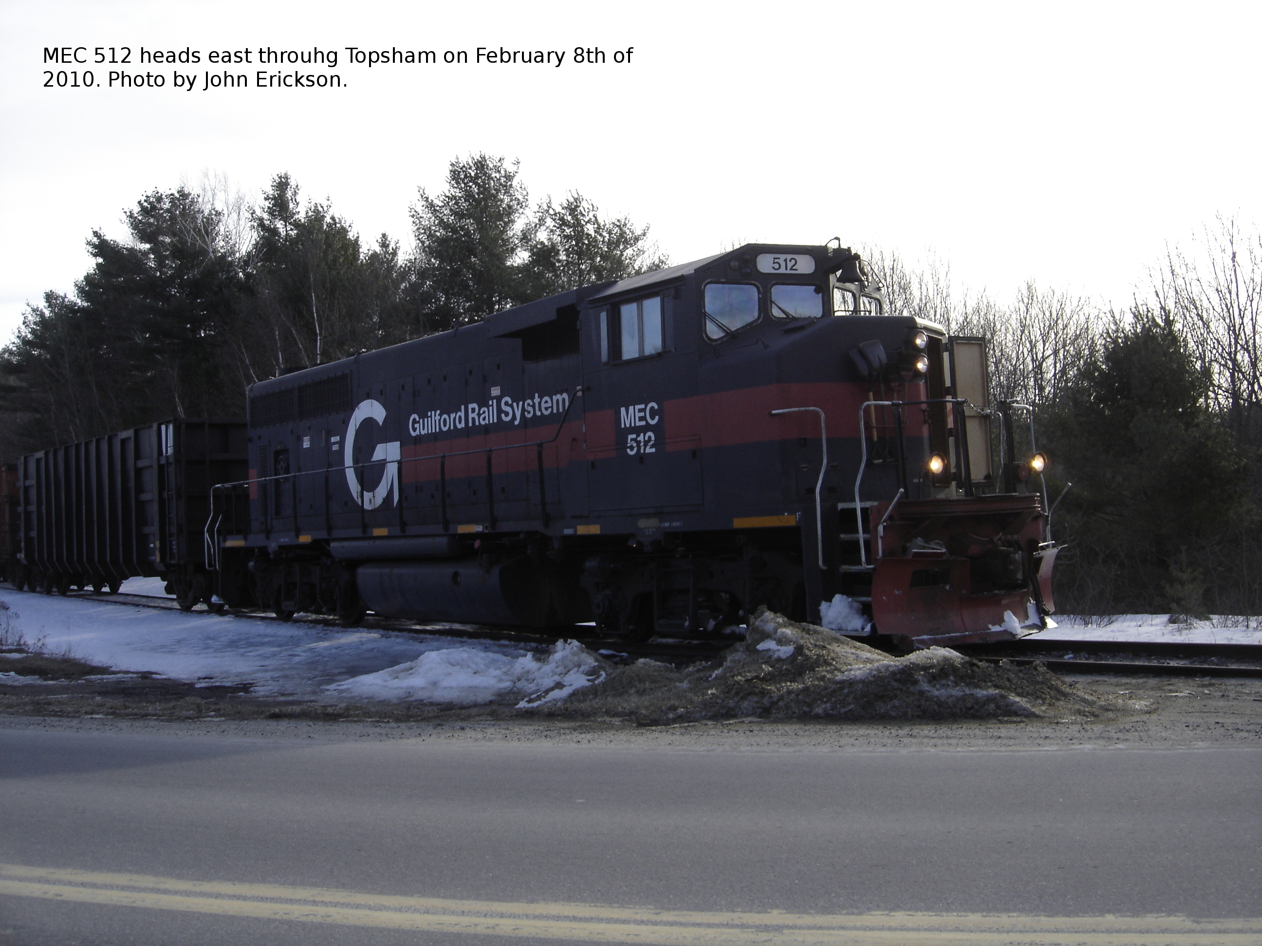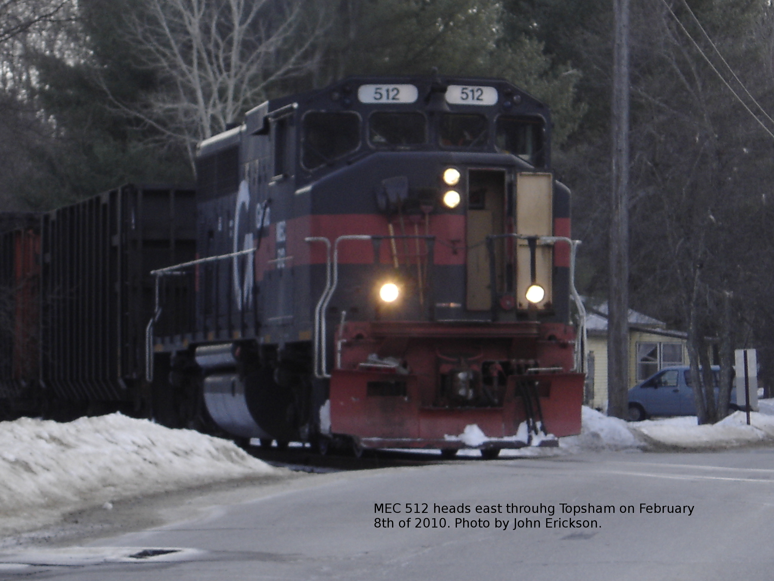 MEC 512 heads east throuhg Topsham on February 8th of 2010.