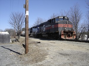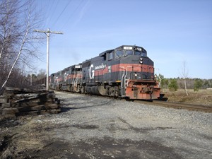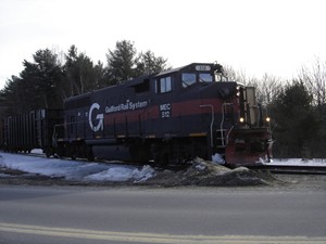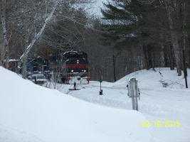 MEC 512 takes a left with PO-1 in Brunswick and heads up the Lewiston Lower branch on February 8th of 2010.