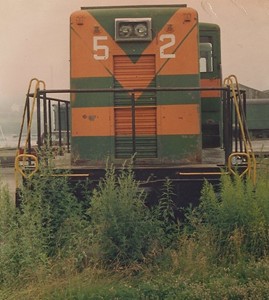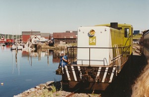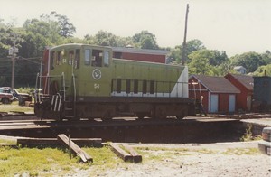 Engine 54 at Belfast in July of 1993 on the Belfast & Moosehead Lake Railroad.