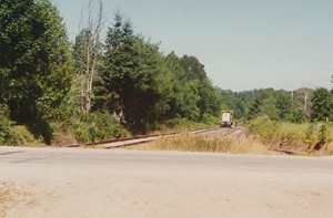 Engine 54 at Brooks in July of 1993 on the Belfast & Moosehead Lake Railroad.