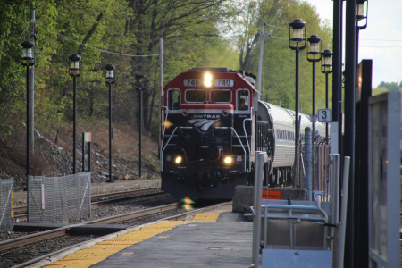 Amtrak 106 leads 684 and 740 past Bradford Station on May 8th of 2025.