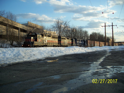 MEC 317, 321, & 610 pull POWA through Lewiston on February 27th of 2017.