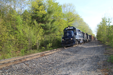MEC 313 heads PORU eastbound through Green on May 15th of 2021.