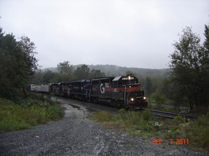 B&M 332, MEC 516, MEC 306, & MEC 348 with WAPO at Browns Crossing on the 7th of September 2011.