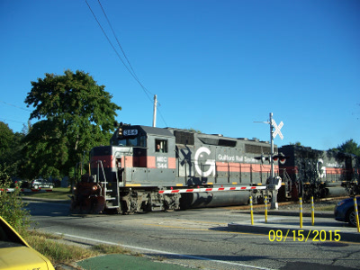 MEC 344 leads PORU through (CPF 192) Falmouth in Portland on September 15th of 2015.